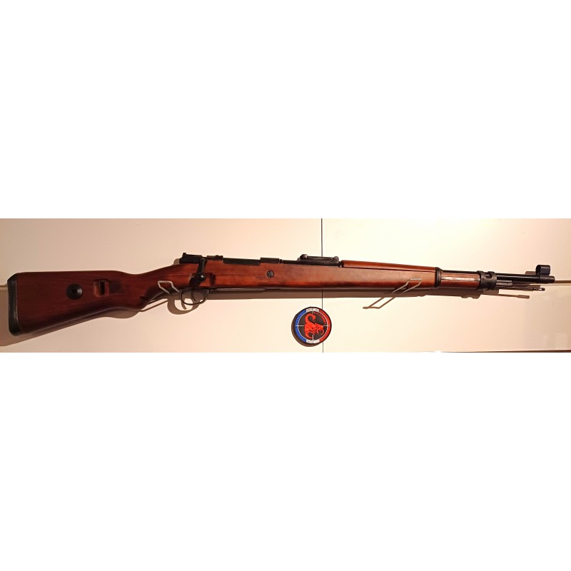 Véritable pièce d’histoire, le Karabiner 98K (le K signifiant “kurz” en allemand, soit “court”) est l’emblématique fusil à verrou allemand conçu par l’armurier Mauser Waffenfabrik. Développée comme arme-à-feu dite "unique" pour la Wehrmacht, c’est-à-dire prévue pour être utilisée comme arme de service dans tous les corps et unités de l'armée, il est le remplaçant du Mauser 98 (Gewehr 98). Les différents marquages gravés sur le boitier de culasse ajoutent encore un peu plus au réalisme saisissant de ce modèle.